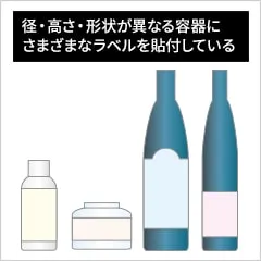 • 瓶やボトル容器など10種類のワークに1日1,000枚ほどのラベルを手貼りしているが、貼り付け作業に時間をとられ困っている。