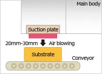 Attach by pressing against the product with a cylinder and blowing with an air jet at the same time. Ideal for applications that are securely attached to curved surfaces and objects of different heights and shapes.