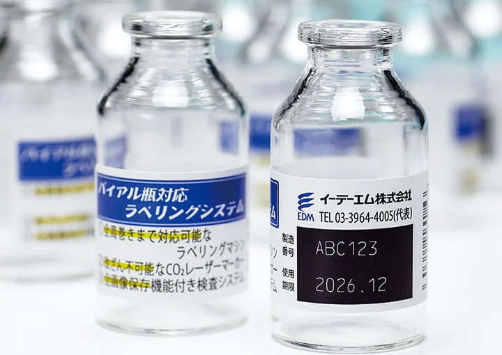 本装置は、バイアル瓶へのラベル胴巻き貼りに最適なレーザーマーカー・印字検査機搭載の胴巻きラベラーです。