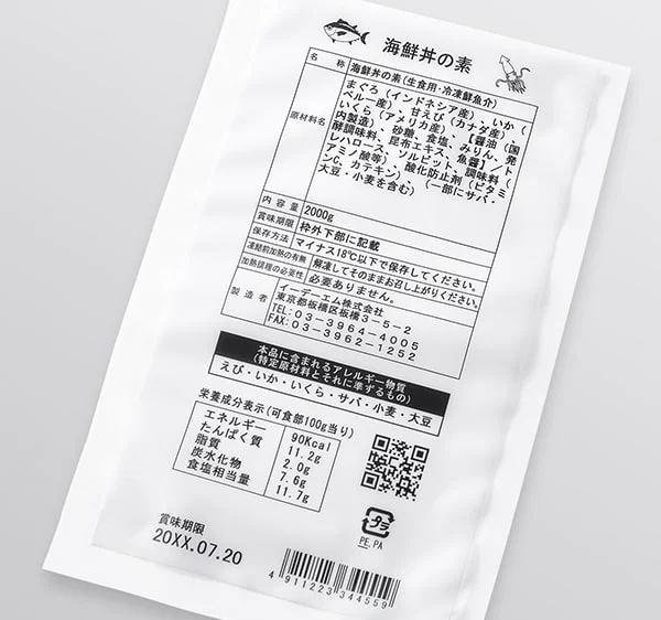 流れる包装フィルムに対して、情報量の多い一括表示など大面積の印字をクリアに実現します。